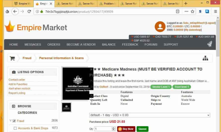 Due to your Bitcoins being transfered to the vendor instantly after you deposited them, so that the order is being accepted automatically, the First method is the fastest trading option on WSM. No, we don’t make darknet market lists money from any of the external hyperlinks. Also, I love theme features dream market offers two different modes (DayLight Mode, Dark Mode), User can select anyone. Dutch police had seized Hansa's servers and arrested two administrators in June. Bitcoin was introduced in 2009 as the first digital currency in history and for this reason, today is. The FBI's computer experts knew from the posts on the computer programmer forum that Ulbricht had coding challenges. They doesnt exist anymore cos of so rife scamers everywhere, Anyone Know any genuine PayPal transfers I have been scammed many times. Finalize Early is a feature which is there for the ease of the sellers, when you do Finalize-Early an order, the seller instantly gets your money without having to wait for Escrow to release it after you receive the products. While credit card fraud can be a headache, your credit card number may be one of the least consequential pieces of your personal information that can land on the Dark Web. It is very hard to analyze the content of the Dark Web as the sites are not indexed and, therefore, it cannot be searched easily. Vulnerable people are still given highly addictive drugs as "marketing" from dealers. Randye Kaye is an accomplished voice talent, actress, singer, broadcaster, and author.